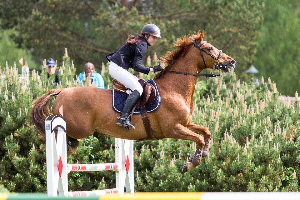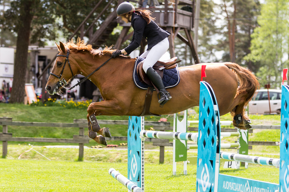 Esteet ovat paljon matalampia, mitä tamman taitotaso on. Silti tuntuu, että tamman puhti on aivan loppu, eikä sillä tunnu olevan edes viitsimistä tsempata. Askeleet se kuitenkin ajoittaa täydellisesti, mikä onkin pelastuksemme tänään.