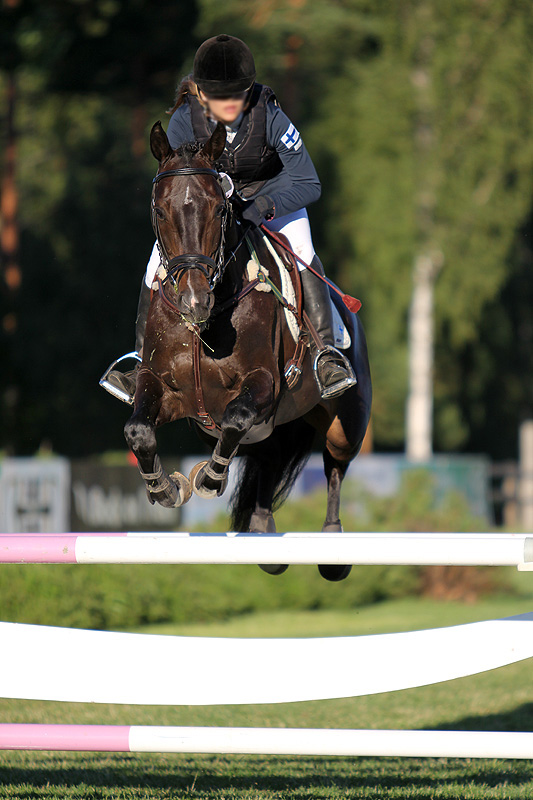 Fredin kanssa on mukava lähteä silloin tällöin myös maastolenkeille, ja maastoesteet tuovat myös vaihtelua rataesteille. Ori suorastaan nauttii maastosta ja sen mahdollistamasta kovasta vauhdista, ja Fredin liitävien askelten takia sen kanssa on ilo ottaa spurttipätkiä tasaisella maalla.